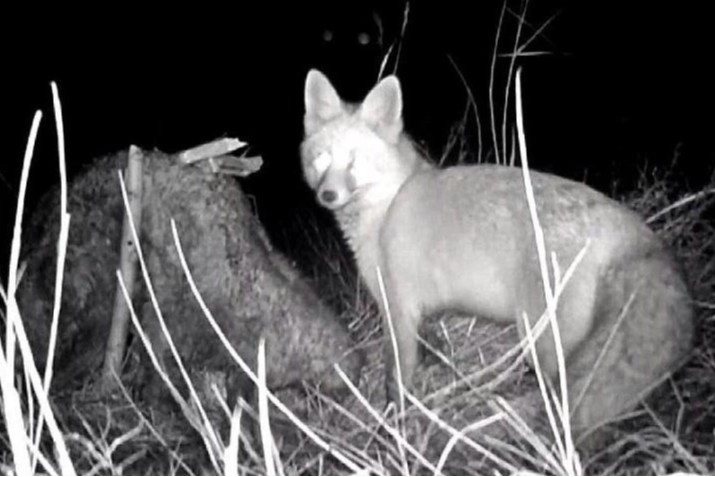 Bodur ağaca sıkıca sarılarak sabitlenen koyun postunun kokusunu alan tilki postu yerinden çıkarmak için mücadele etti. Fotokapana yansıyan görüntüde tilkinin postu çıkarmak için uğraştığı bir süre sonra başaramayacağını anlayınca vazgeçtiği görüldü.