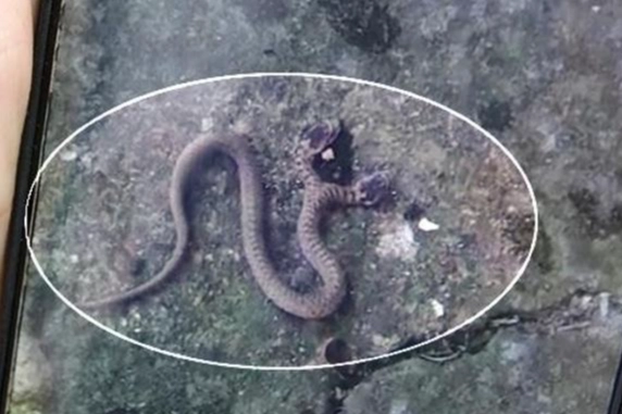 Birlik Mahallesi'nde yaşayan bir çiftçi, evinin önündeki beton zeminde çift başlı bir yılanın süründüğünü fark etti.