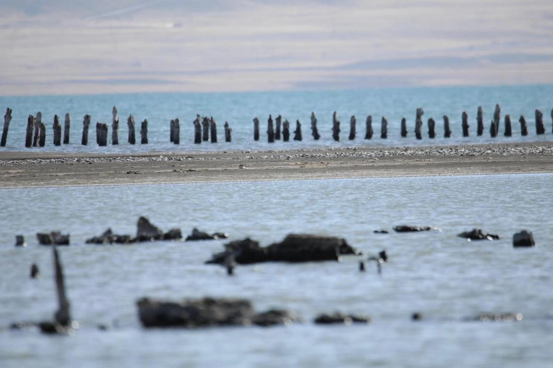Tarihi kalıntıların, mikrobiyalitlerin (dikit), eski yerleşim alanlarına ait yapı kalıntılarının görülebildiği göl kıyısında, yıllardır su altında olan bazı kalıntılar da çekilmeyle birlikte görünür hale geldi.