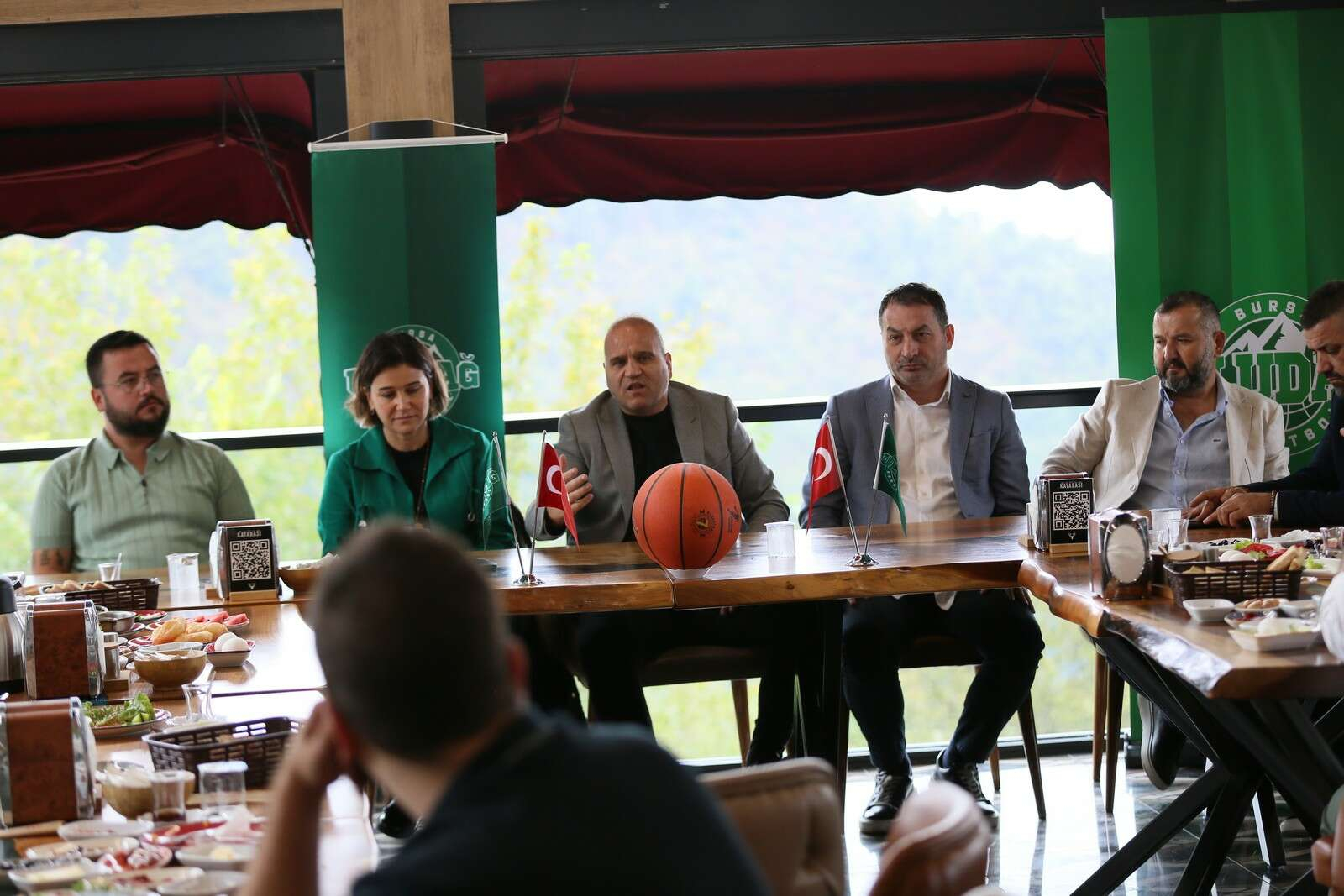 Uludağ Yolu Kayabaşı Cafe’de düzenlenen kahvaltıda basınla buluşan Aşkın Değirmenci, 2. Başkan Arzu Selamet, Altyapıdan sorumlu yönetici Veysel Ayaz, Basın ve Medyadan sorumlu yönetici Halil Kamış, Reklam ve Pazarlamadan sorumlu yönetici Saffet Beki ve kulüp müdürü Fatih Vardar soruları cevapladı.