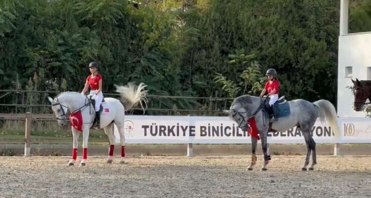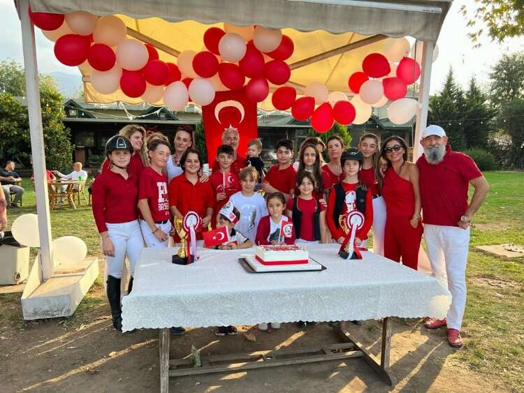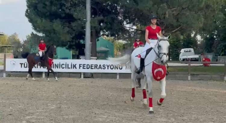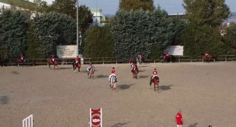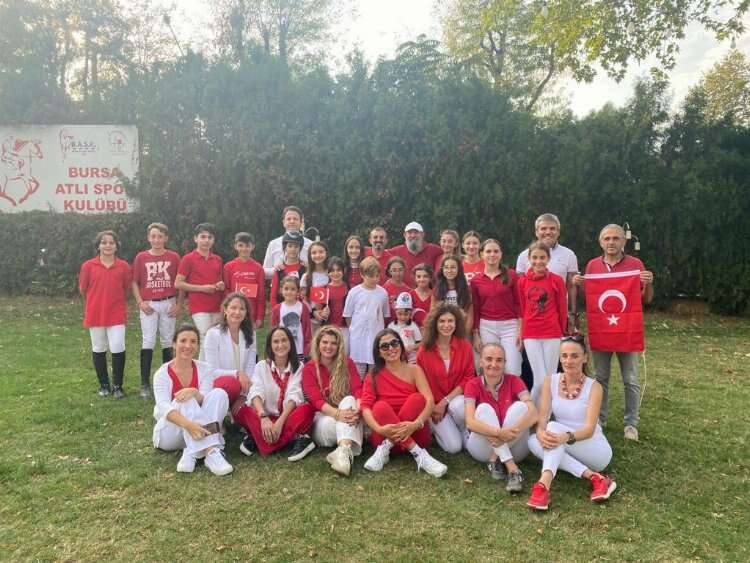 Türkiye Binicilik Federasyonuna bağlı Bursa Atlıspor Kulübü’nün yaşları 9 ile 16 arasında değişen sporcuları, atlarıyla birlikte maneje çıkarak Cumhuriyet Bayramı’nı kutladı.