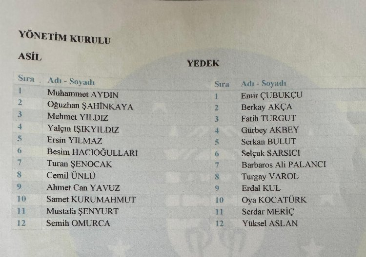 Denetim Kurulu üyeleri ise Hamit Işık, Gökay Azak ve Mesut Öztürk’ten oluştu.