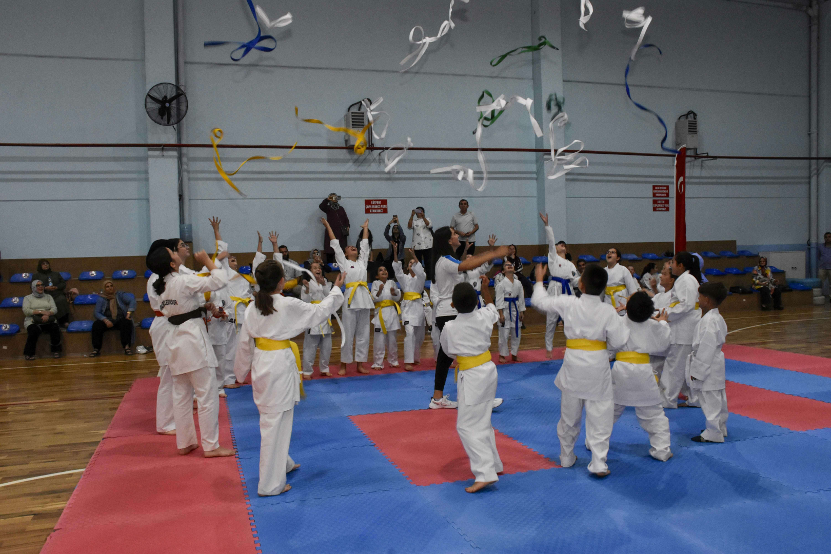 Bir üst kuşağa geçmeye hak kazanan sporcuların kuşakları ve sınav sonuç belgeleri, Belediye Başkan Yardımcısı Gökşen Akgör, antrenörleri Selma Akdeniz ve Necip Kaplan tarafından verildi.