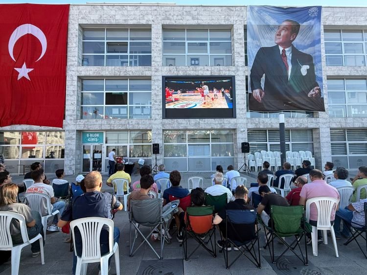 A Milli Erkek Basketbol Takımı çeyrek finalde Polonya ile karşı karşıya. Nilüfer Belediyesi, Halk Evi önünde dev ekran kurdu.