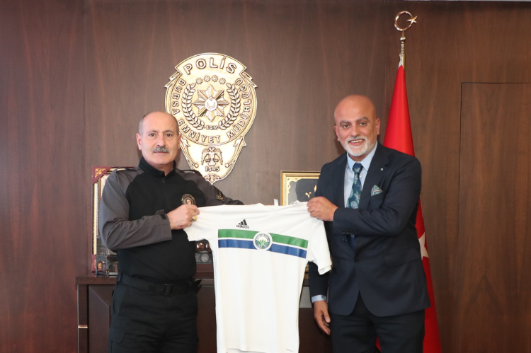 Ziyaretin sonunda Başkan Tamer İşler, Bursa Emniyet Müdürü Dr. Sabit Akın Zaimoğlu‘na isminin yazılı olduğu Bursa Nilüfer Futbol Kulübü formasını takdim etti.