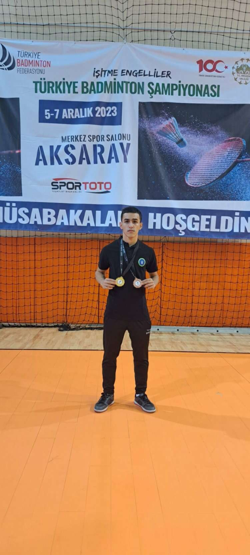 Aksaray'da düzenlenen İşitme Engelliler Badminton Türkiye Şampiyonası'nda Bursa Büyükşehir Belediyesporlu Mert Nurettin Aydın 2 madalya kazandı.
