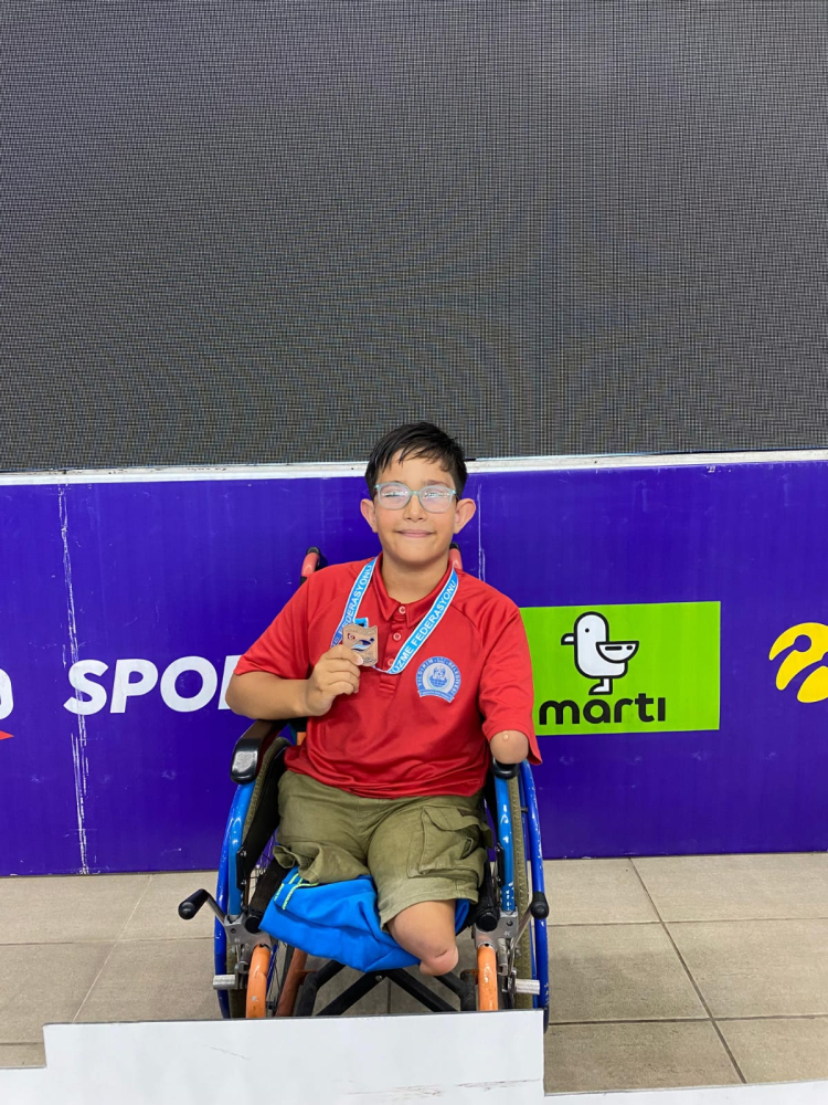 Doğuştan bacakları ve sol kolunun dirseğinden aşağısı olmayan Bursalı 9 yaşındaki para yüzücü Muhammed Ali Biçer, katıldığı ilk ulusal turnuvada 100 metre ve 200 metre S5 kategorilerinde Türkiye şampiyonluklarını elde etti.