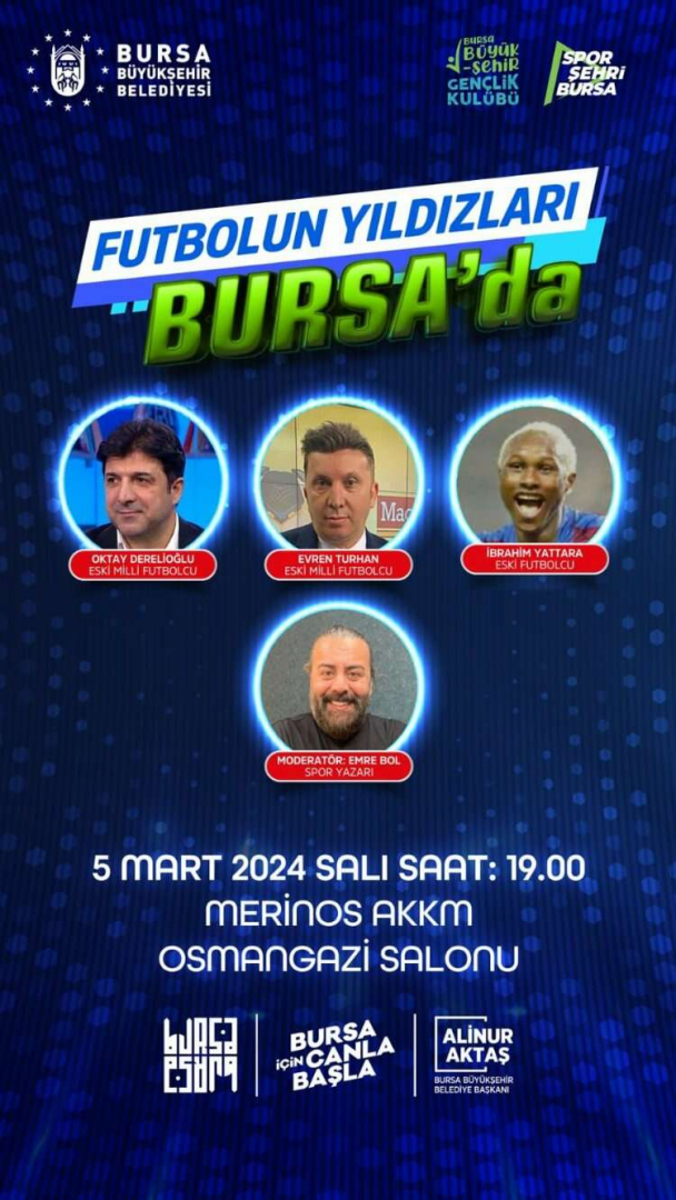 Organizasyona Türk futbolunun unutulmaz isimleri de katılacak. Büyükşehir Belediyesi’nin yayınladığı tanıtıma göre etkinliğe, Oktay Derelioğlu, Evren Turhan ve İbrahim Yattara katılacak.