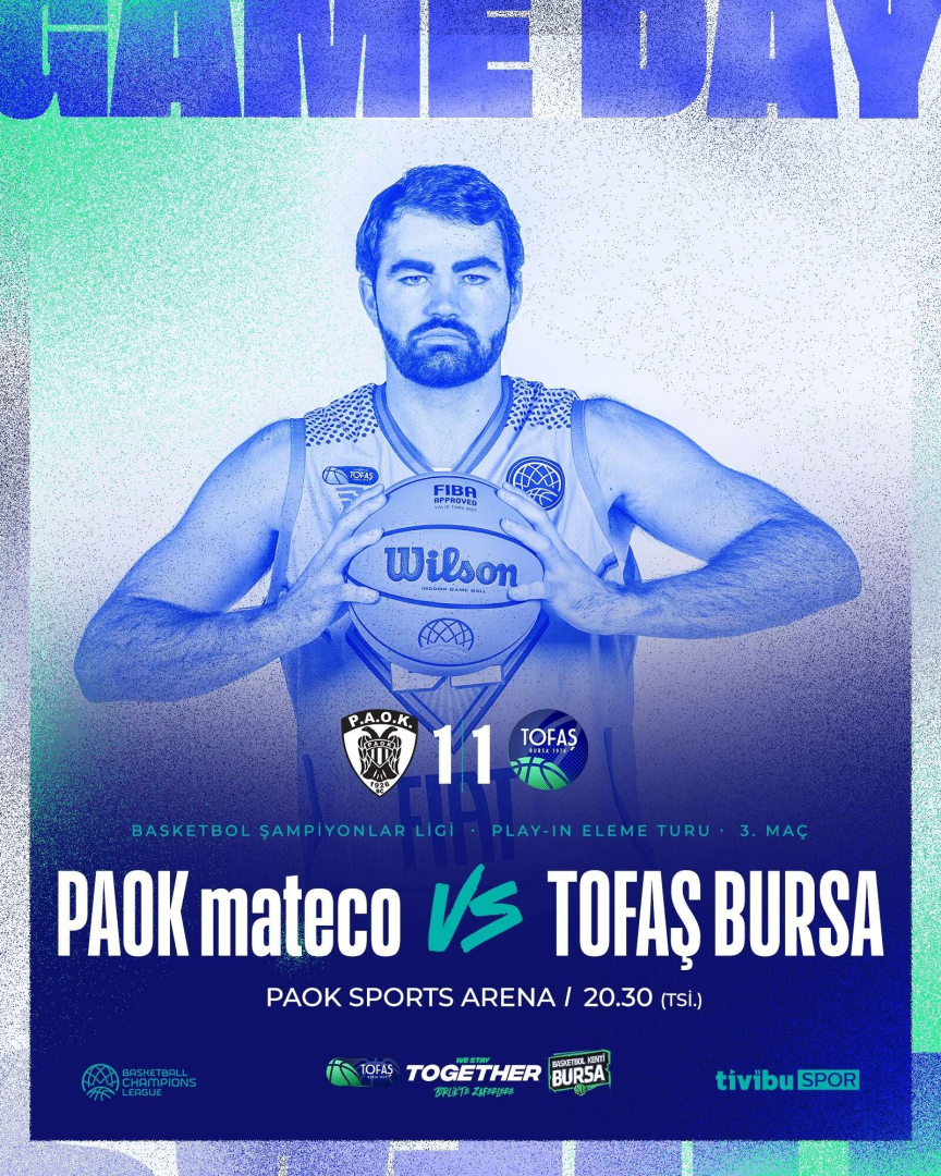 Ülkemizi FIBA Şampiyonlar Ligi’nde temsil eden TOFAŞ play-in serisi üçüncü maçında bu akşam Yunanistan deplasmanına çıkacak.