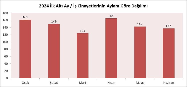 2024 yılının ilk yarısında iş cinayetlerinin aylara göre dağılımı şöyle: