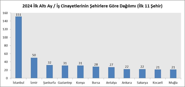 2024 yılının ilk altı ayında Türkiye’nin 78 şehrinde ve yurtdışında on üç ülkede (kısa vadeli çalışmak için gidilen veya Türkiye menşeili şirketlerde çalışan) iş cinayeti gerçekleşti: