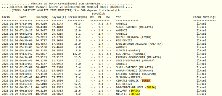 AFAD ve Kandilli duyurdu: Bursa'da gece yarısı deprem fırtınası!