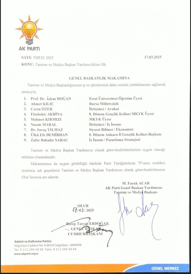 Konuyla ilgili açıklama yapan Kılıç, "Cumhurbaşkanımız ve Genel Başkanımız Sayın Recep Tayyip Erdoğan'ın tensipleri, Tanıtım ve Medya Başkanımız Sayın Faruk Acar'ın takdirleriyle Tanıtım ve Medya Başkan Yardımcısı olarak görevlendirilmiş bulunmaktayım. Bu kutlu davada bizlere verilen bu önemli sorumluluğu en iyi şekilde yerine getirebilmek için var gücümüzle çalışacağız. Rabbim mahcup etmesin, milletimize ve davamıza hayırlı hizmetler yapmayı nasip eylesin" dedi.