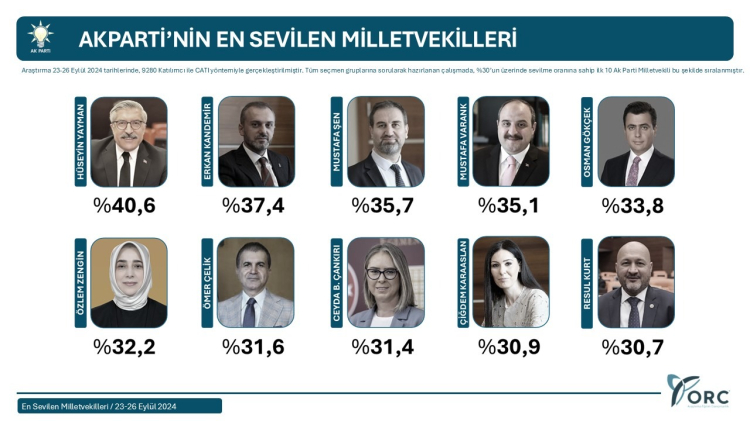 ORC Araştırma, 'AK Parti'nin en sevilen milletvekilleri' anketinin sonuçlarını paylaştı.
