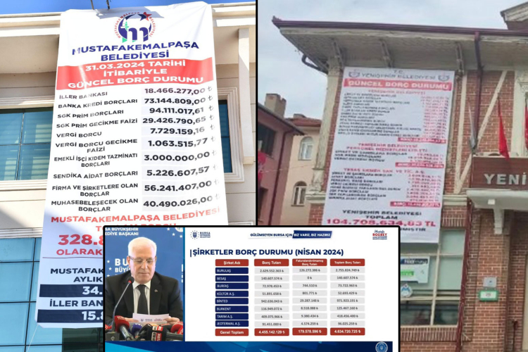 31 Mart Yerel Seçimleri sonrası başkanların değiştiği Bursa Büyükşehir Belediyesi, Nilüfer Belediyesi, Mustafakemalpaşa Belediyesi ve Yenişehir Belediyesi'nin ardından Osmangazi Belediyesi'nin de borcu belli oldu.