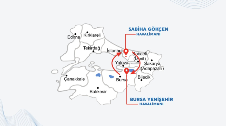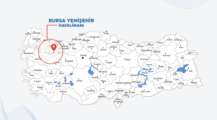 Bursa’da 2000 yılında yapımı tamamlanan Yenişehir Havalimanı, 2 piste ve 10 adet orta ile büyük gövdeli, 4 adet ise küçük gövdeli hava aracı için oluşturulmuş bir aprona sahip. Havalimanı; yolcu ve kargo uçaklarının yanı sıra ambulans, genel havacılık, yangın söndürme, akaryakıt ve gümrük hizmetleriyle 24 saat kesintisiz olarak hizmet veriyor.