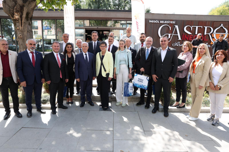 Bursa Büyükşehir Belediye Başkanı Mustafa Bozbey, Almanya’nın Rheinland-Pfalz Eyaleti Ekonomi, Ulaştırma, Tarım ve Bağcılık Bakanlığı Devlet Sekreteri Petra Dick-Walther ve beraberindeki heyetle İnegöl ilçesinde bir araya geldi. Bursa’ya özgü lezzetlerin tadına bakarak hayran kalan heyet, Başkan Mustafa Bozbey tarafından 26-27-28 Eylül tarihlerinde yapılacak Bursa Gastronomi Festivali’ne davet edildi.