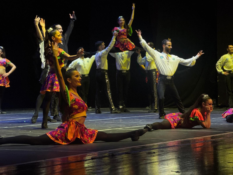 Gösteri topluluğunun seyirciye alkışlar eşliğinde tempo tutturması salonda coşkuyu artırdı.