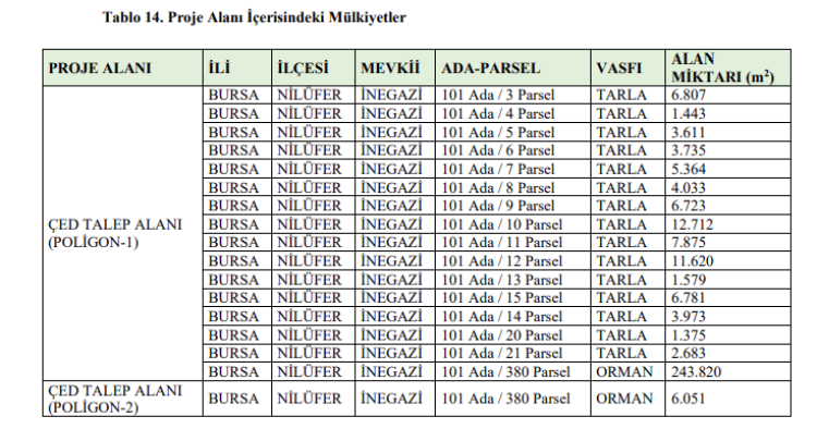 Daha önce alınan, "ÇED Olumlu Kararı"na açılan dava kapsamında, Bursa 2. İdare Mahkemesi tarafından 2023/24 sayılı Esas No ve 2023/1274 sayılı Karar No ile projenin çevresel etkilerinin yeterince irdelenmediği, bu konuda hazırlanan ÇED raporunun da bilimsel ve teknik yönden tatmin edici düzeyde yeterli bilgileri ihtiva etmediği gerekçesi ile iptaline karar verilmişti.