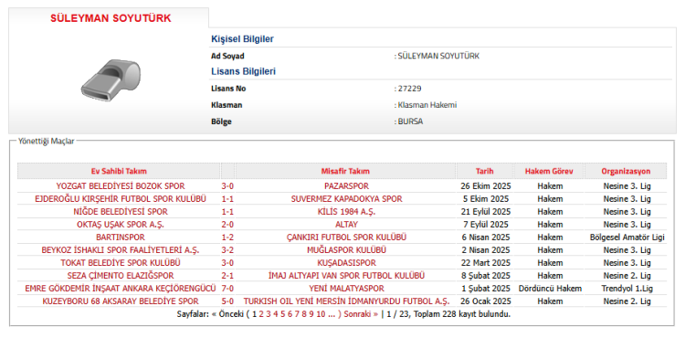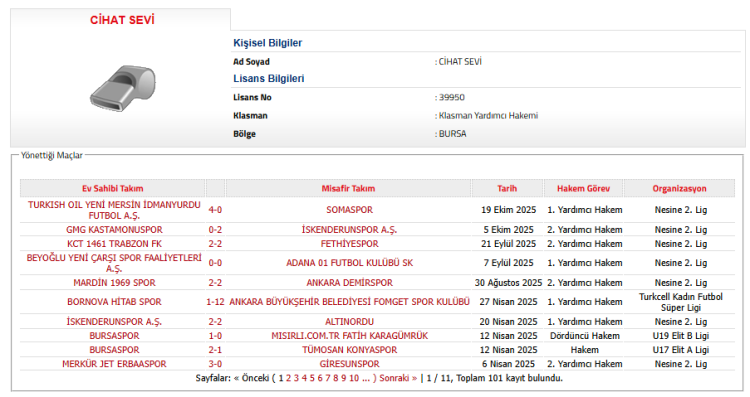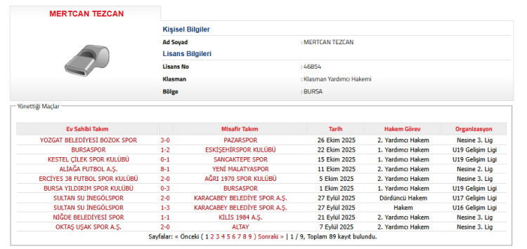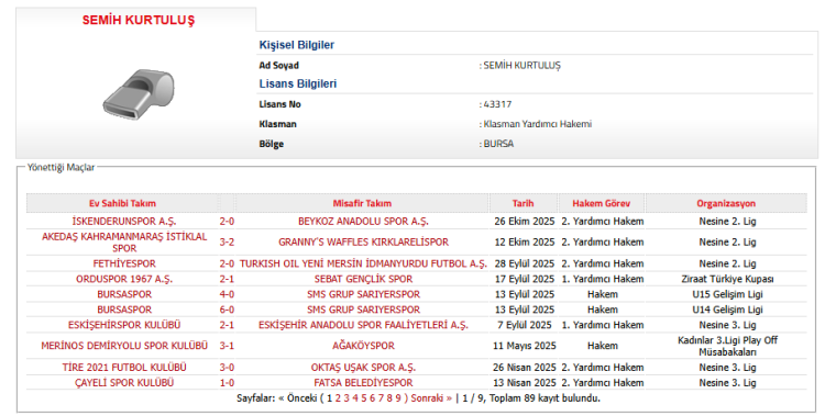 İşte Bursa bölgesi hakemlerinin görev aldığı son 10 maç...
