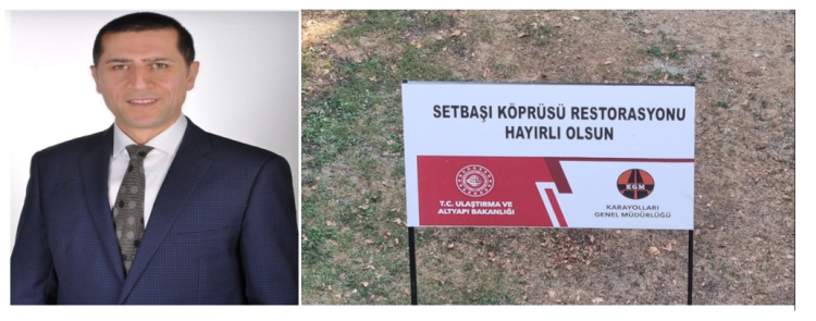Setbaşı Köprüsü'nün restorasyonu için başlatılan süreci yakından takip eden Kurtoğlu Mahallesi Muhtarı Fatih Kapuci, bakanlığın köprünün önüne, "Hayırlı olsun." ifadelerinin yer aldığı tabelayı diktiğini söyledi.