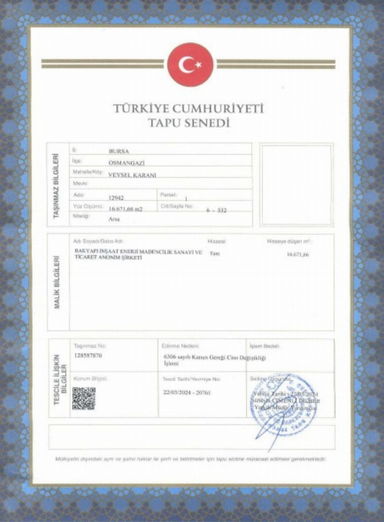 Bursa Valiliği tarafından yapılan açıklamada, "Bursa İli, Osmangazi İlçesi, Veysel Karani mahallesi 12942 Ada, 1 parsel , 16.671,66 m2'lik yüzölçümlü alan mevkiindeki Bakyapı İnşaat Enerji Madencilik San. Ve Tic. A.ş. tarafından yapılması planlanan Bakyapı Veysel Karani Kentsel Dönüşüm projesi ile ilgili olarak Bakanlığımıza sunulan PTD Dosyası incelenmiş ve değerlendirilmiştir ÇED Yönetmeliği'nin 17. maddesi gereğince Bakyapı Veysel Karani Kentsel Dönüşüm projesi'ne Valiliğimizce 'Çevresel Etki Değerlendirmesi Gerekli Değildir' kararı verilmiştir." ifadeleri kullanıldı.