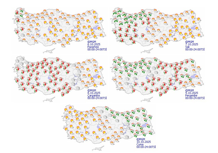 Yeni haftada etkili olacak yağışlı sistemle birlikte Türkiye genelinde hava sıcaklıkları düşerken, kuvvetli rüzgar ve sağanak yağışlara karşı dikkatli olunması önerildi.