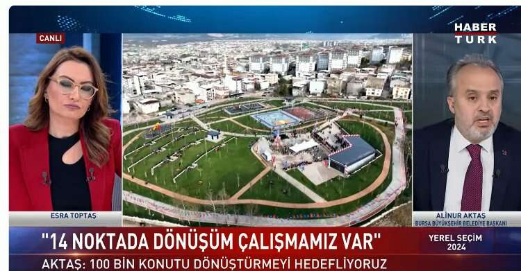 Habertürk'te Esra Toptaş'ın sunduğu "Yerel Seçim 2024" programında konuşan Bursa Büyükşehir Belediye Başkanı Alinur Aktaş önemli açıklamalarda bulundu.