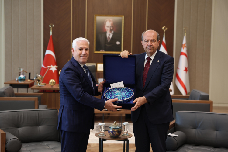 CHP Bursa Milletvekili Hasan Öztürk ve Büyükşehir Belediyesi yöneticilerinin de yer aldığı ziyarette Başkan Mustafa Bozbey, KKTC Cumhurbaşkanı Ersin Tatar’ı makamında ziyaret etti.