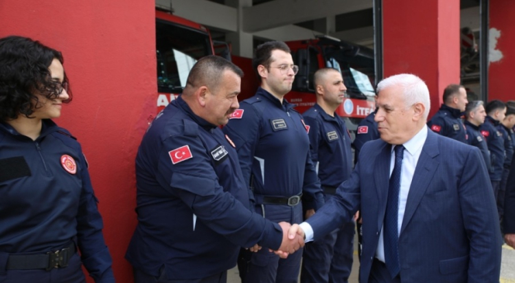 BURULAŞ, Zabıta, İtfaiye ve Mezarlık Hizmetleri'nde Ramazan Bayramı'nda görev yapan çalışanlara bayram ziyaretinde bulunan Başkan Bozbey, görev başındaki personele bayram şekeri ikram etti.