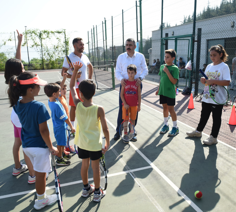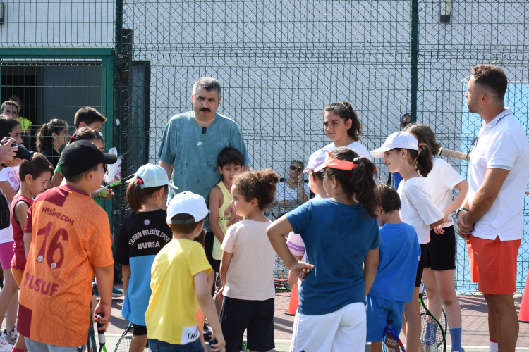 Bursa Yıldırım Belediye Başkanı Oktay Yılmaz, Yaz Spor Okulları kapsamında Kaplıkaya Cazibe Merkezi içerisindeki tenis kortunu ziyaret ederek sporcu ve aileleriyle bir araya geldi