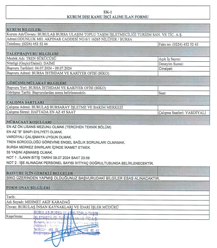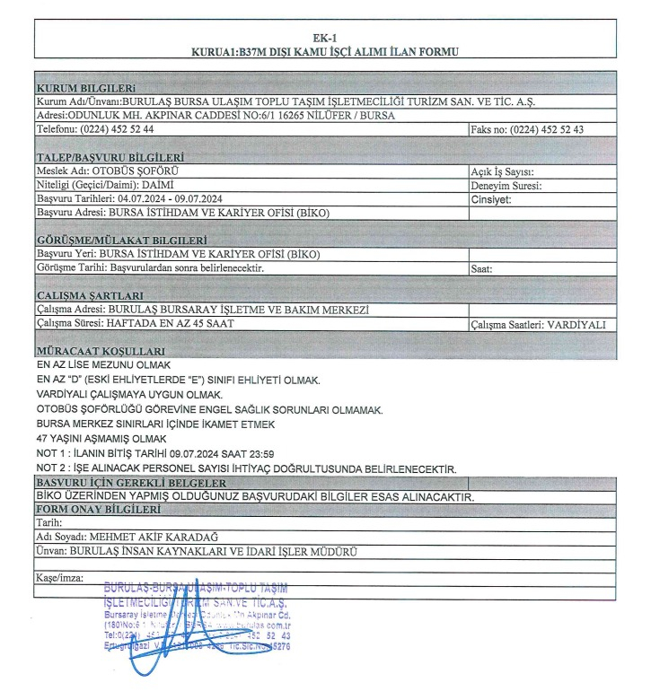 Bursa Ulaşım Toplu Taşıma İşletmeciliği'nin(BURULAŞ), kadın vatman ve otobüs şoförü alımı için resmen ilan verdi. İşte başvuru şartları...