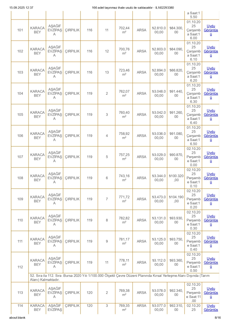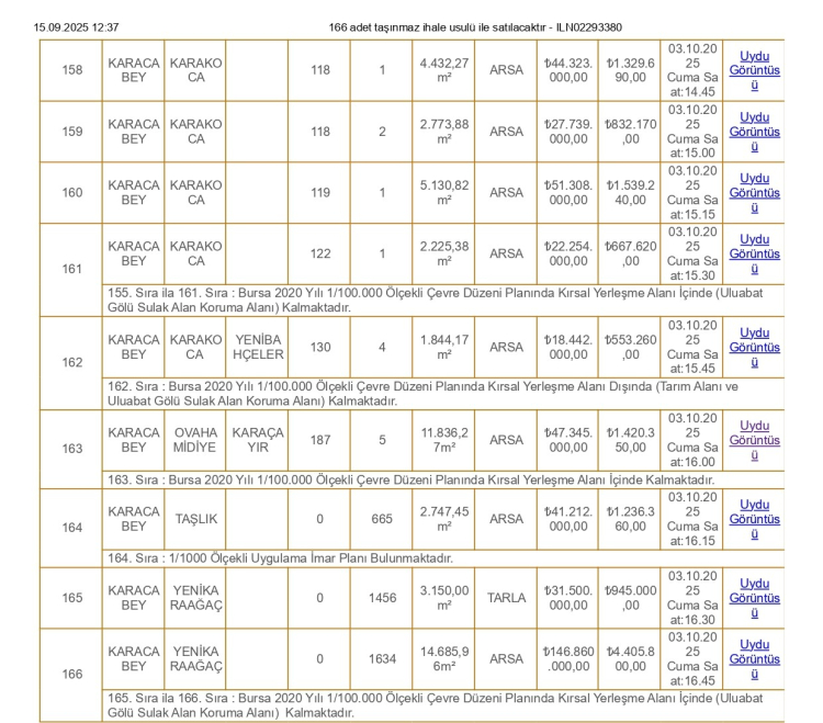 Bursa Karacabey Belediyesi, 166 adet tarla ve arsayı parsel parsel satışa çıkardı.