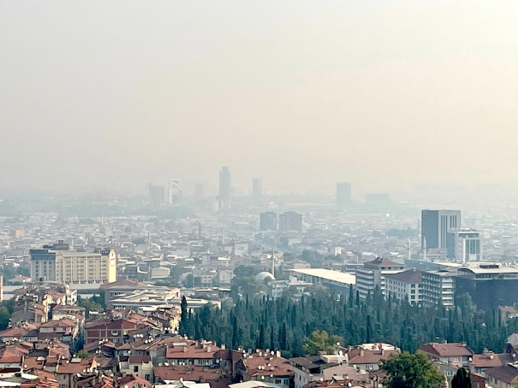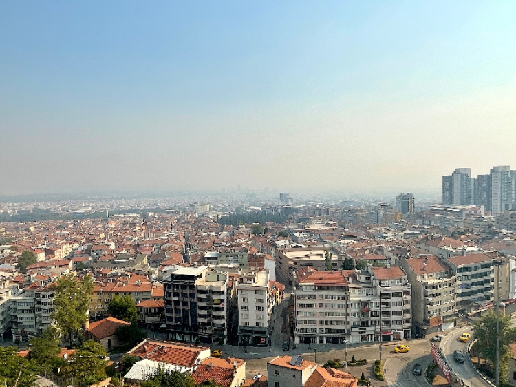 Geyve'nin Hacılar Mahallesi'ndeki ormanlık alanda 20 Temmuz'da çıkan, bir gün sonra Osmaneli sınırlarına sıçrayan ve söndürme çalışmaları devam eden yangın nedeniyle oluşan yoğun duman, Bursa kent merkezini kapladı.