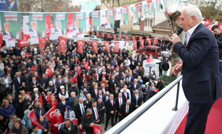CHP Bursa Büyükşehir Belediye Başkan Adayı Mustafa Bozbey’in, Yenişehir Heykel Meydanı’ndaki halk buluşması mitinge dönüştü. Binlerce vatandaş meydanda toplanarak sloganlar ve alkışlar eşliğinde Bozbey’i karşıladı.