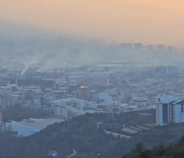 Paylaşılan görüntülerde fabrikalardan çıkan dumanların, ilçenin üzerini perde gibi kapladığı görülüyor.