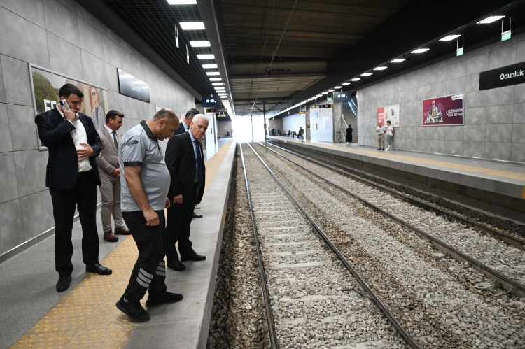 Bursa Büyükşehir Belediye Başkanı Bozbey, şehrin batı yakasında etkili yağan sağanak sonrası BursaRay Odunluk İstasyonu'nu yerinde inceledi.