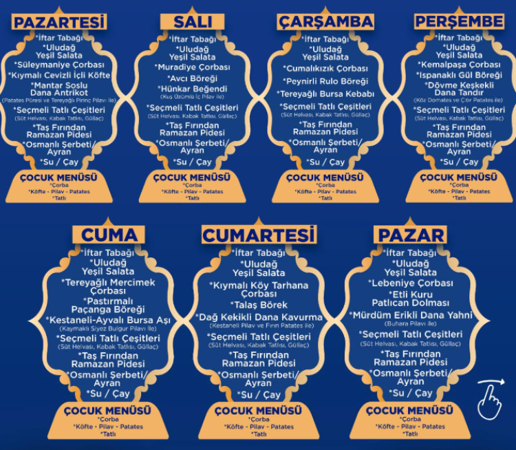 10 çeşit ürünün yer aldığı sabit menülerin fiyatları 650 TL olarak belirlendi. Çocuk menüsü ise 350 TL....