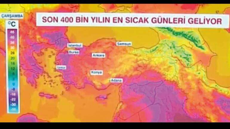 CNN Türk Meteoroloji Danışmanı Prof. Dr. Orhan Şen, "Türkiye'de de sıcaklıklar yükseldi. Antalya'da 46 derece. Geçtiğimiz haftaki sıcaklık 43 dereceydi. Bu sıcak hava dalgası Pazartesi günü biraz normale dönüyor. Salı günü ise öğleden sonra şimdiye kadar gördüğümüz iki sıcak hava dalgasından daha sıcak hava dalgası gelecek. Salı, Çarşamba ve Perşembe günü özellikle Marmara ve Ege Bölgesi'nde etkili olacak. Bu sıcak hava dalgasıyla 400 bin yıllık en yüksek sıcaklık rekoru da kırılacak. İstanbul'da en yüksek sıcaklık rekoru 40.1 derece, onu da geçecek gibi. Bayağı kuvvetli bir dalga gelecek. Avrupa sıcak hava dalgasından kurtulurken o dalga bize geliyor. 400 bin yıllık ölçüm, hava zerreciklerinin katmanlarından tespit ediliyor. Hata payı da çok fazla değildir." dedi.