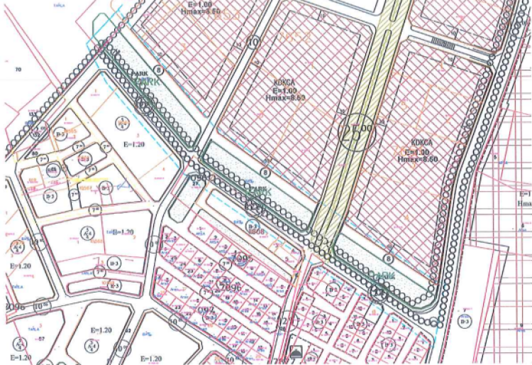 Onaylı Nazım İmar Planında 11808 ada, 7 parselin kuzeyinden geçen 12 metrelik yol alanının, Konut Dışı Kentsel Çalışma Alanında kalan 7651ada, 4 parselin güneyinde bulunan ve 1/1000 ölçekli Uygulama İmar Planında 8 metre yol alanında