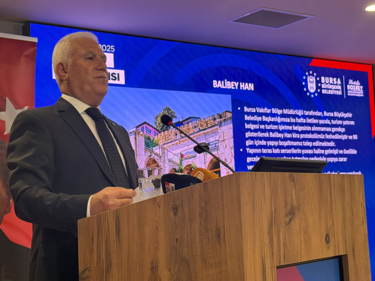 Bozbey, Bursa Vakıflar Bölge Müdürlüğü’nden bir yazının geldiğini açıklayarak yazının detayları hakkında bilgilendirmelerde bulundu. Bozbey, “Bursa Vakıflar Bölge Müdürlüğü 90 gün içerisinde Balibey Han’ı terk edin diye yazı göndermiş. Günde 15 bin kişinin ziyaret ettiği bir müze haline getirdik. Nedeni ise, 2002’de biz büyükşehire verdik 2 yıl içerisinde buranın ruhsatlandırma eksiklerini tamamlayın dedik. 22 yıl boyunca zaman zaman yazılar yazılmış geçilmiş. Sormak istiyorum neden 22 yıl buna müsade edilmiş? Sizlerin Bursalıların takdirine bırakıyorum. Biz orası için projelerimizi hazırlamış bulunmaktayız. Orada hem kadın kooperatiflerinin faydalanacağı hemde Bursa gastronomisininde fayda sağlanacağı bir yer haline getirmek istiyoruz. Bu konu hakkında da valimizle de görüşeceğim” dedi.