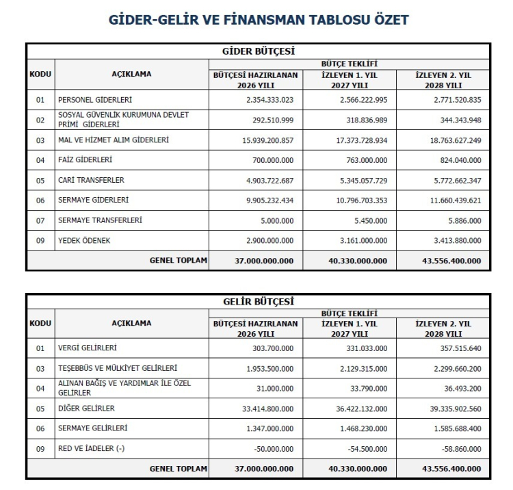 Onaylanan bütçedeki 37 milyar TL'lik gelir-gider tablosu da ortaya çıktı.