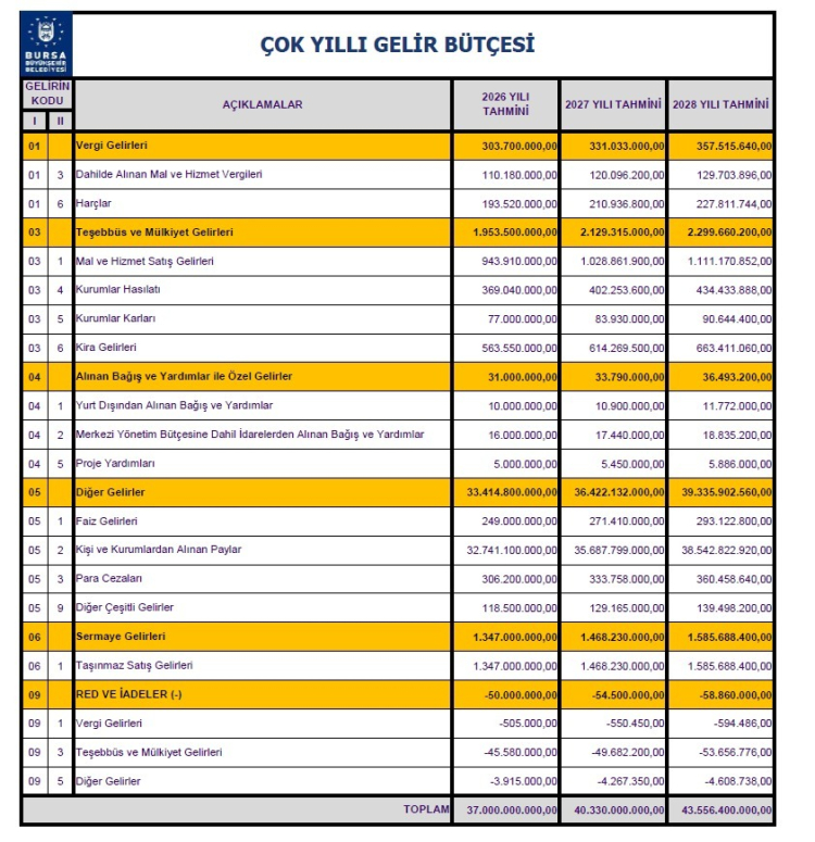 Bursa Büyükşehir Belediyesi borçları nedeniyle 2026 yılında 700 milyon TL faiz ödemesi yapacak.