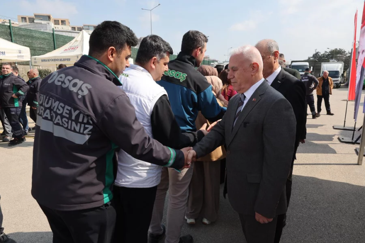 Bursa Büyükşehir Belediye Başkanı Mustafa Bozbey, ilk olarak Hüdavendigar Kent Parkı'nda Tarım Peyzaj AŞ çalışanlarıyla buluştu.