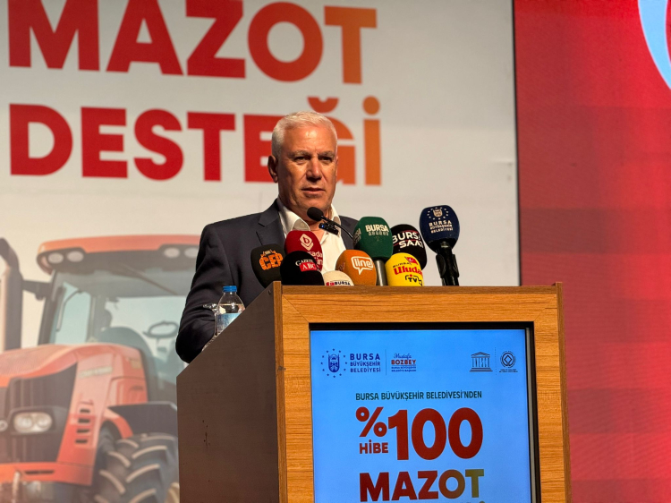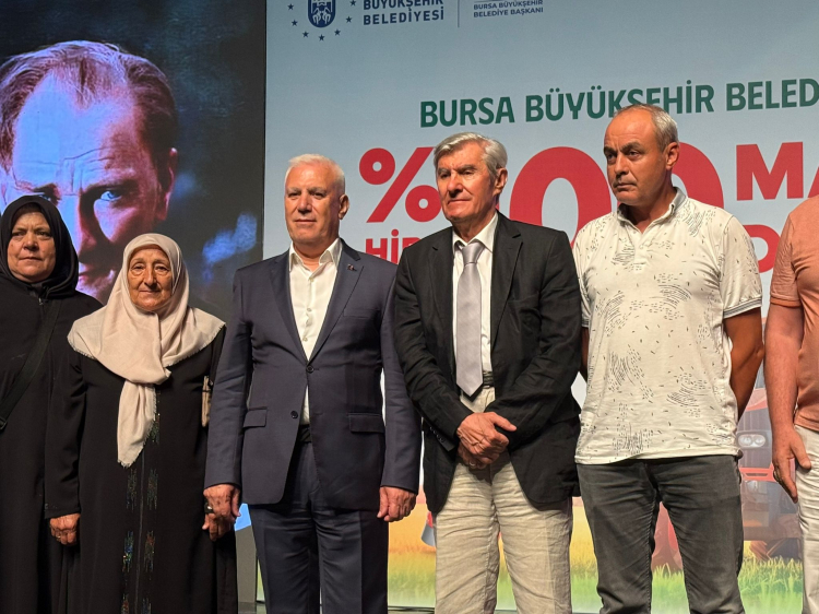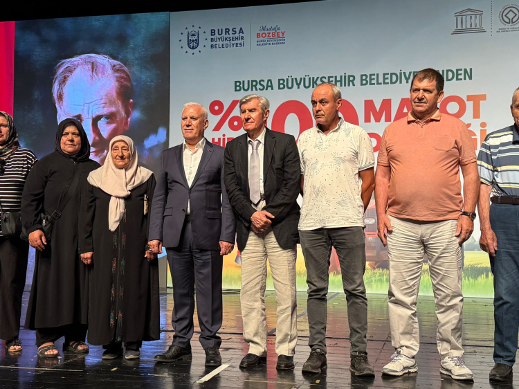 Bursa Büyükşehir Belediyesi tarımsal üretimi destekliyor, hayata geçirdiği "%100 Hibeli Mazot Desteği" projesiyle çiftçilerin yanında oluyor. Üreticilerin girdi maliyetlerinin azaltılması amacıyla başlatılan proje kapsamında, mazot desteği almaya hak kazanan çiftçilerilere mazot kartları Başkan Mustafa Bozbey'in katılacağı törenle dağıtıldı.