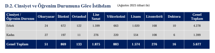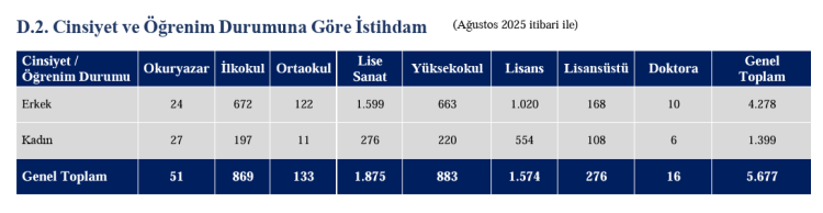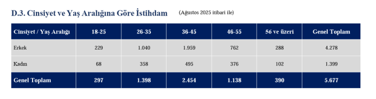 Paylaşılan verilere göre; 5 bin 677 çalışanın 4 bin 278'i erkek 1.399'u kadınlardan oluşuyor.