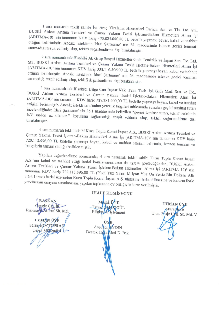 BUSKİ, kentteki atıksu ve çamur çakma tesislerinin işletme-bakım hizmetleri için ihale açmıştı.