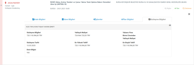 Sene başında onaylanan ihalenin sonucu, Elektronik Kamu Alımları Platformu (EKAP) aracılığıyla duyuruldu.