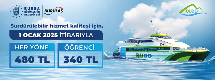 Bursa Büyükşehir Belediyesi'ne bağlı Bursa Ulaşım Toplu Taşıma İşletmeciliği (BURULAŞ), İstanbul-Bursa arasında hizmet veren deniz otobüsü seferlerine yüzde 37 oranında zam yaptı.