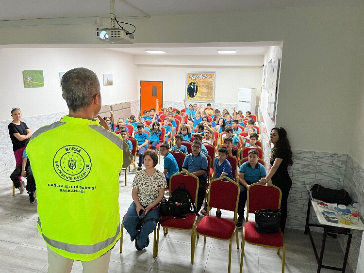 Bursa Büyükşehir Belediyesi tarafından ilkokul ve ortaokul öğrencilerine yönelik yaz aylarında halk sağlığını tehdit eden vektör canlılarla (haşere) mücadele konusunda eğitimler verildi.